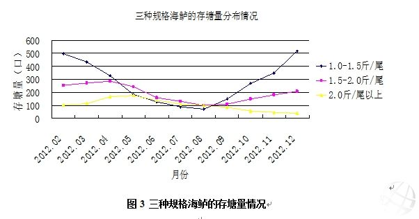 圖3 三種規(guī)格海鱸的存塘量情況