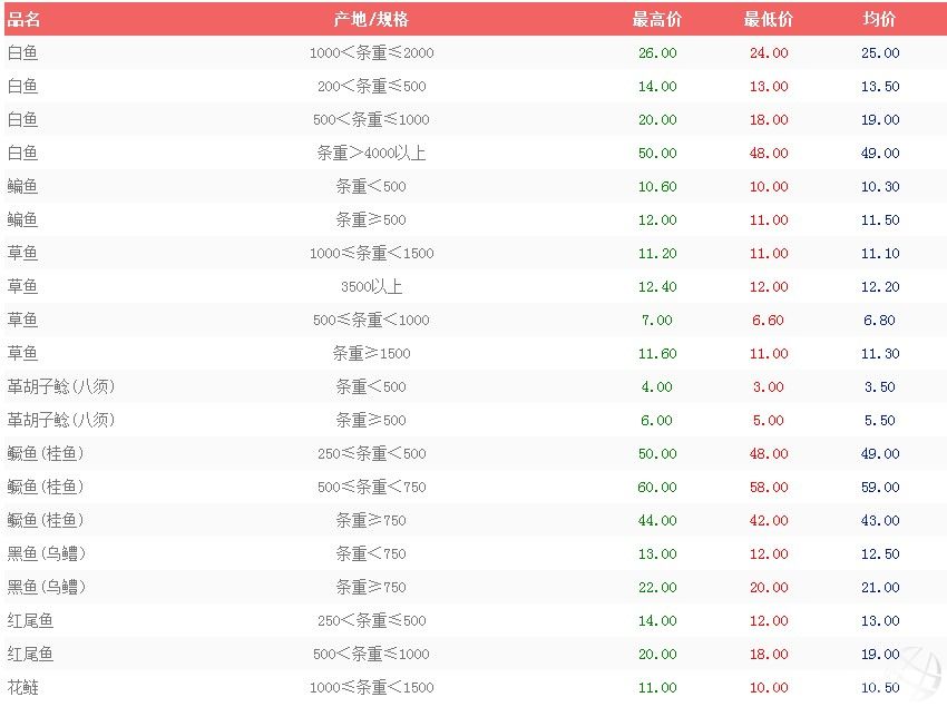 中國水產頻道獨家報道,3月21日武漢白沙市場水產價格情況如下: