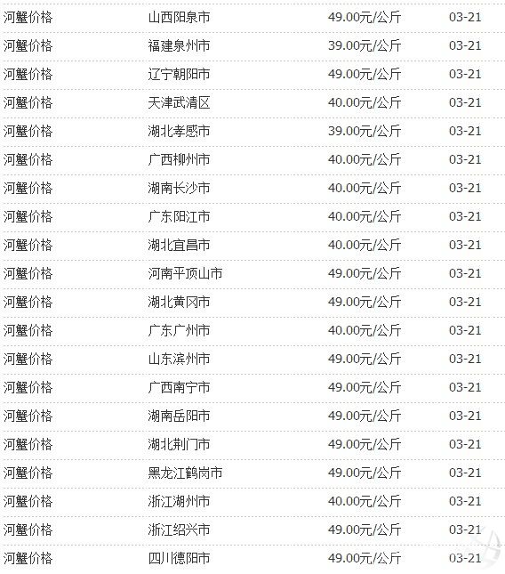 中國水產頻道獨家報道,3月21日國內部分地區河蟹價格統計如下: