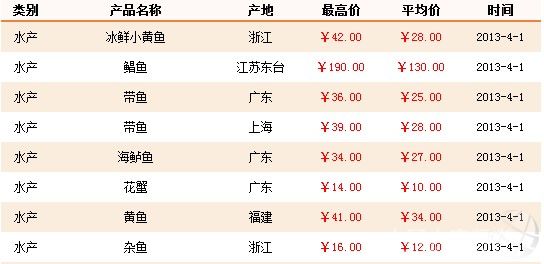 摘要: 4月1日上海農產品中心批發市場水產品價格