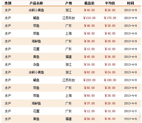 中國水產頻道報道,4月8-9日上海農產品中心批發市場水產品價格如下: