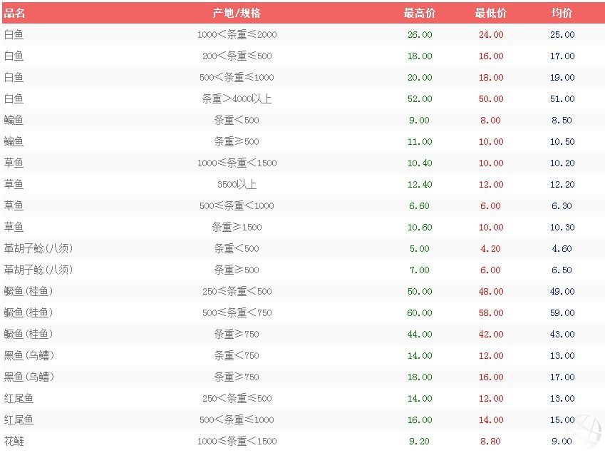 中國水產頻道獨家報道,4月17日武漢白沙市場水產價格情況如下: