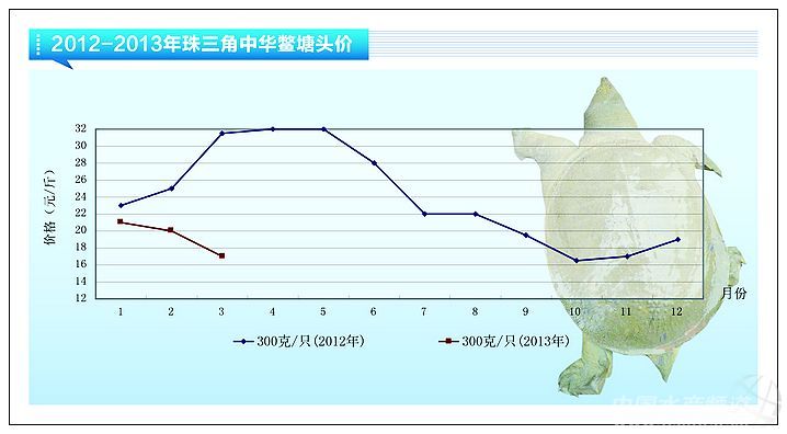 元宵后,由于消費量開始減少,養戶爭先恐后出魚,江浙一帶溫室魚價格出現急跌。元宵前溫室甲魚還維持在15元以上,元宵后就以每天6、7毛的價格下跌,因害怕跌了還要再跌,慌亂中部分養戶10.5元也匆忙出售,個別出現10元以下的價格。3月13日,浙江湖州,嘉興海寧一帶溫室甲魚統貨價12元左右,養戶不計成本恐慌逃命的氣氛稍有緩和。 |