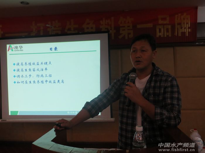賽前,江門澳華許愿斌總經理首先對澳華集團做了簡要的介紹,并對生魚產業前景進行了深入的分析。許愿斌總經理表示,經濟危機、原料價格高企,飼料持續升價,尤其是魚粉資源屢創新高、生魚價市場低迷,是擺在生魚行業發展的攔路虎。在談到如何應對這一現狀時,許愿斌總經理坦言:“目前市場上飼料定位偏低,現在做飼料實際上就是做原料,只有采購成本上取得優勢,才能在飼料行業殘酷的競爭中取得主動權。2012年,飼料行業是虧本的,澳華卻能取得成功的秘訣是公司所有利潤來自于魚粉備貨。接下來,江門澳華將以做沉水魚料的思路來做蝦料、膨化料,用做鴨料的理念來做沉水魚料,把利潤先降下來,取得更大的市場份額。今年江門澳華的目標是實現15萬噸的銷量。” 鄧志勇經理講課