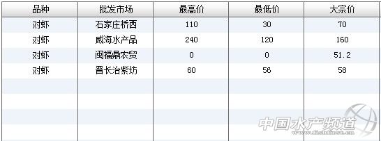 中國水產(chǎn)頻道獨家報道,6月26日全國主要批發(fā)市場對蝦價格行情如下: