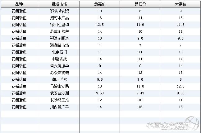 (中國水產頻道水產價格信息共享Q群:245296163,歡迎提供各種水產品一線價格信息!)