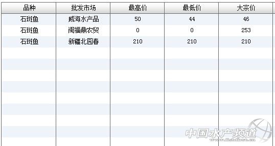 摘要: 6月27日全國主要批發市場石斑魚價格行情如下