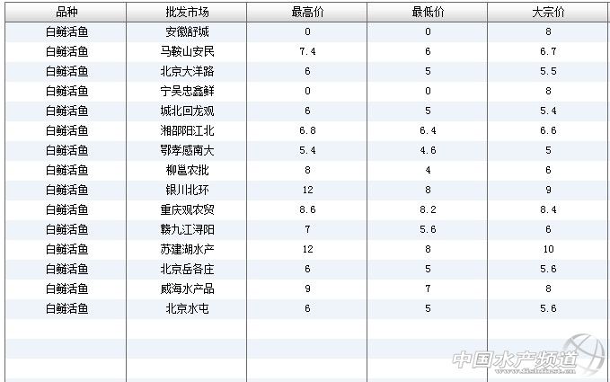 | 中國(guó)水產(chǎn)頻道獨(dú)家報(bào)道,7月8日全國(guó)主要批發(fā)市場(chǎng)人工甲魚價(jià)格行情如下: (中國(guó)水產(chǎn)頻道水產(chǎn)價(jià)格信息共享Q群:245296163,歡迎提供各種水產(chǎn)品一線價(jià)格信息!) 中國(guó)水產(chǎn)頻道(www.fuqitext.com)獨(dú)家報(bào)道,轉(zhuǎn)載請(qǐng)說明出處,違者追究法律責(zé)任, 謝謝合作。 |