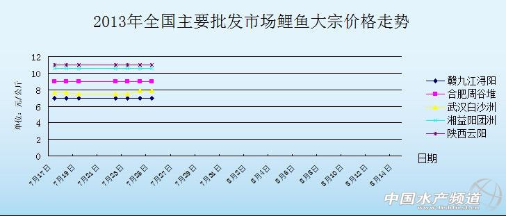 2013年7月25日全國主要批發市場鯉魚價格行情