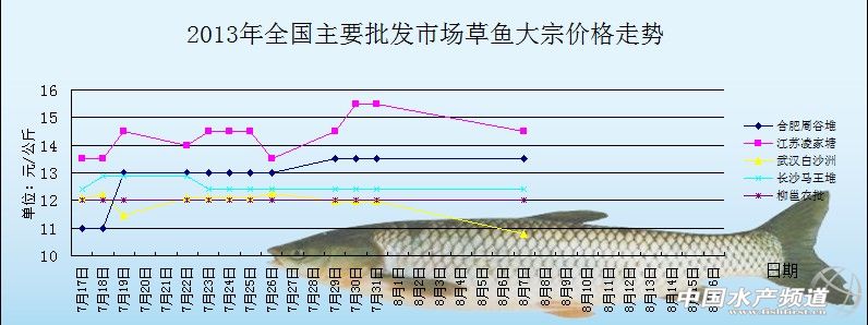 中國水產(chǎn)頻道獨家報道, 8月7日 全國主要批發(fā)市場草魚蝦價格行情如下: