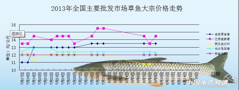 中國水產頻道獨家報道, 8月9日全國主要批發市場草魚蝦價格行情如下: