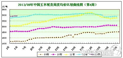 圖表:2013年第4周中國局部市場玉米現貨周度均價比較統計表(單位:元/噸)