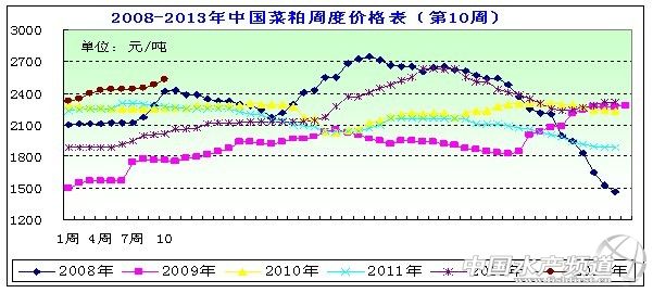 中國水產(chǎn)頻道報道,據(jù)上海益農(nóng)訊, 一、市場概述 本周(2013年/3/1-3/8)本周受外圍市場走弱影響,菜粕期貨整體呈現(xiàn)震蕩走勢。目前國內(nèi)菜粕供應總體呈現(xiàn)緊張態(tài)勢,因此加工與貿(mào)易企業(yè)的出貨壓力總體較小。同時,市場供應緊張態(tài)勢難以緩解,而消費旺季又將面臨到來,引發(fā)近期油廠不僅頻頻提供出廠價格,使得多數(shù)企業(yè)出現(xiàn)限量成交的現(xiàn)象。本周國內(nèi)菜粕價格延續(xù)穩(wěn)健態(tài)勢,市場交投有所改善。本周菜粕均價在2530元/噸左右,周度均價呈穩(wěn)定上漲趨勢。 圖表:2013年3月第1周(3月1日-3月8日,總第10周)中國主要地區(qū)菜粕價格統(tǒng)計(元/噸)