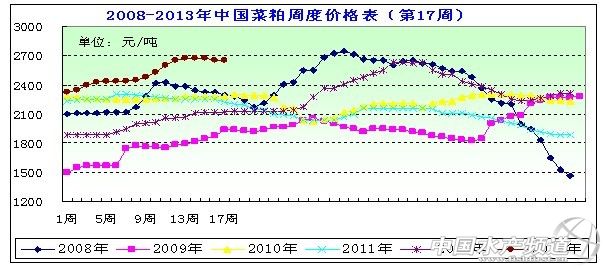 中國水產(chǎn)頻道報道,據(jù)上海益農(nóng)訊, 一、市場概述 本周(2013年/4/19-4/28)。受外盤及豆粕,同時禽流感事件深入發(fā)展拖累,本周初國內(nèi)菜籽類期貨集體下跌。菜粕期貨以寬幅震蕩為主,大幅下挫。而菜粕現(xiàn)貨價格受下游菜粕水產(chǎn)飼料需求旺盛以及加工企業(yè)菜粕庫存較少等因素支撐維持平穩(wěn),但是長江下游及沿海港口加粕價格繼續(xù)疲軟走低。本周菜粕均價在2652元/噸左右,周度均價呈穩(wěn)中略跌趨勢。 圖表:2013年4月第4周(4月19日-4月28日,總第17周)中國主要地區(qū)菜粕價格統(tǒng)計(元/噸)