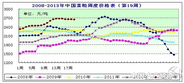 中國水產(chǎn)頻道報(bào)道,據(jù)上海益農(nóng)訊, 一、市場概述 本周(2013年/5/3-5/10)。雖然國內(nèi)新作油菜籽逐漸進(jìn)入收獲期,但在各方對臨儲收購政策的熱情“呼喚”中,本周初菜粕期貨并未變得搶眼,反而遭遇“寒流”,拖累菜粕現(xiàn)貨市場難有精彩表現(xiàn)。周三隨著豆粕期貨的強(qiáng)勢走高,菜粕期貨相伴而行,菜粕現(xiàn)貨價(jià)格處于先跌后穩(wěn)態(tài)勢。本周菜粕均價(jià)在2643元/噸左右,周度均價(jià)呈穩(wěn)中略跌趨勢。 圖表:2013年5月第2周(5月3日-5月10日,總第19周)中國主要地區(qū)菜粕價(jià)格統(tǒng)計(jì)(元/噸)