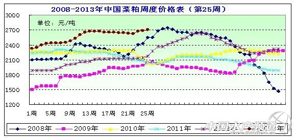 中國水產(chǎn)頻道報道,據(jù)上海益農(nóng)訊, 一、市場概述 本周(2013年/6/14-6/21)。本周初受現(xiàn)貨供需持續(xù)偏緊,以及中儲糧全面掌控菜籽的收購,市場逐步消化菜粕價格“壟斷價格”的支撐。國內(nèi)現(xiàn)貨菜粕比較抗跌,菜粕期貨也重拾漲勢,表現(xiàn)搶眼。由于國家菜籽收儲政策細節(jié)的調(diào)整所致,預(yù)計后市粕強油弱的格局難以改變,菜粕后市期現(xiàn)貨價格強勢格局將延續(xù)。本周菜粕均價在2704元/噸左右,周度均價呈穩(wěn)中上揚趨勢。 圖表:2013年6月第3周(6月14日-6月21日,總第25周)中國主要地區(qū)菜粕價格統(tǒng)計(元/噸)