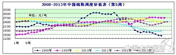 一、市場概述 本周(2013年/1/25—2/1)。本周受美豆上揚以及連豆粕溫和上漲,帶動國內豆粕現貨價格,對棉粕市場稍有提振,局部略漲。同時由于市場籽棉資源不多,加之近期天氣情況不佳,軋花廠、油棉廠已經陸續放假,棉籽購銷放緩,價格仍高,各產品需求也收到節日氣氛影響而轉淡,報價以穩為主,成交零星。本周棉粕均價在2462元/噸左右,周度均價呈上漲趨勢。 具體情況分析如下: 圖表:2013年1月第5周(1月26日-2月1日,總第5周)中國主要地區棉粕價格統計(元/噸))