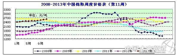 一、市場概述 本周(2013年/3/8—3/15)。 本周初受外圍提振,以及鐵路運費基金上調,同時豆類供應緊張,短期內豆粕回歸跌勢可能性不大,提振國內棉粕價格行情。由于油廠虧損嚴重,廠商提價心態(tài)逐漸強烈,短期內價格依舊堅挺運行。隨著天氣的轉暖,水產啟動在即,需求上將會逐漸明朗,對棉粕價格形成利多支撐,提振棉粕市場短期仍舊維持堅挺。本周棉粕均價在2589元/噸左右,周度均價呈上漲趨勢。 具體情況分析如下: 圖表:2013年3月第2周(3月8日-3月15日,總第11周)中國主要地區(qū)棉粕價格統(tǒng)計(元/噸))