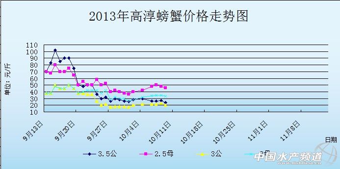 中國水產(chǎn)頻道獨(dú)家報(bào)道,據(jù)網(wǎng)友提供消息,10月9日江蘇高淳河蟹價(jià)格行情如下: