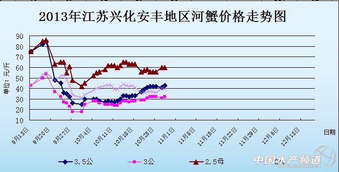 中國水產頻道獨家報道,據網友提供消息,10月28日江蘇興化安豐河蟹價格行情如下: