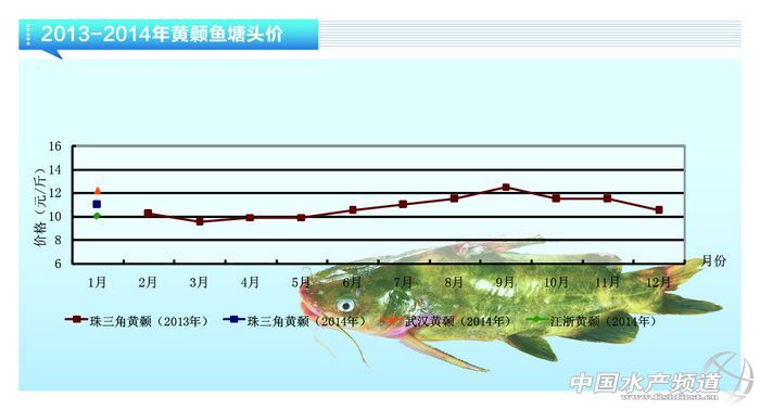 黃顙魚:價格穩定 1月中旬,各地黃顙魚批發價格湖北地區2兩以上12.2元/斤,江浙地區2兩以上10元/斤,珠三角地區3兩以上11元/斤。與上月相比,各地價格穩 定。隨著春季來臨,黃顙魚價格節前可能會有小幅上漲。據了解,2013年浙江地區黃顙魚養殖量有所增加,預計春節過后價格上漲壓力較大,請養殖戶選好時機賣魚。(孫華良) |