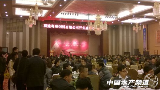中國水產頻道3月15日獨家報道,為歡慶3月16日福建粵海飼料有限公司(以下簡稱“福建粵海”)開業慶典,3月15日晚,福建粵海于福建漳州云霄縣云頂溫泉酒店設宴款待客戶、供應商及媒體代表,逾500人到場,盛況空前。福建粵海總經理鄭真龍先生、廣東粵海飼料集團營銷副總裁傅凱先生分別致辭。