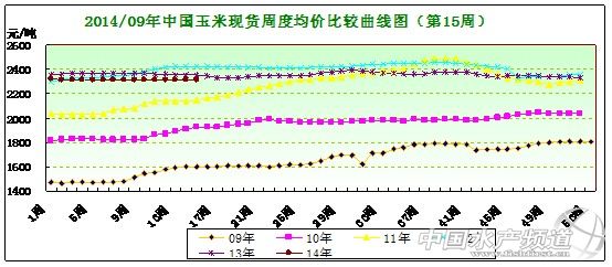 中國水產頻道報道,據上海益農訊,2014年第15周(2014年4月8日-4月11日),東北產區玉米市場出現階段性缺貨現象,價格趨強;華北則因下游消費清淡,玉米價格承壓,行情區域化明顯。益農監測2014年第14周全國均價在2310.90元/噸,較上周下跌0.04%。