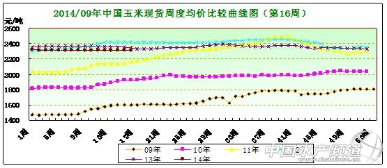 中國水產(chǎn)頻道報道,據(jù)上海益農(nóng)訊,2014年第16周(2014年4月14日-4月18日),玉米市場仍處于售糧高峰期,市場壓力較大,但玉米上量持續(xù)縮減,企業(yè)收購難度不斷加大,玉米價格穩(wěn)中有漲。益農(nóng)監(jiān)測2014年第16周全國均價在2317.00元/噸,較上周上漲0.26%。