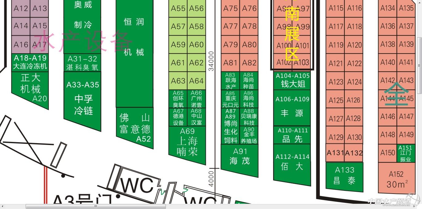 其中,水產(chǎn)品加工企業(yè)如國聯(lián)水產(chǎn)、百洋集團(tuán)率先挺進(jìn)水博會,入駐A區(qū)展廳入口,觀眾進(jìn)入展廳率先經(jīng)過此處(圖3);設(shè)備企業(yè)如正大機(jī)械、上海喃嶸等也早早預(yù)定優(yōu)勢展位,積極備展;種苗企業(yè)如海茂種苗也已紛紛搶占有利地形(圖4)。