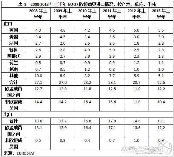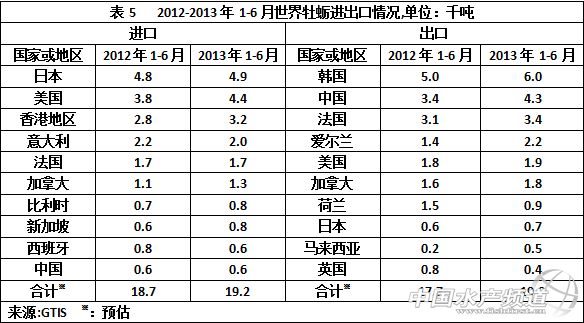 中國水產頻道獨家報道,據《中國水產貿易》訊,2013年上半年歐盟成員國之間的貽貝貿易占總貿易的72%,進口貿易主要是歐盟成員國之間進行,主要來自西班牙、荷蘭、丹麥、意大利和英國。智利是非歐盟成員國的貽貝最大供應國,占24%的市場份額。 加拿大和愛爾蘭作為新興貝類市場,他們將目光鎖定中國市場,他們認為該國的貽貝消費正以20%的年增幅在增長,而智利期待與泰國簽署新的自貿協定后兩國的貿易會有新的增長。總體上看,2013年扇貝、牡蠣和貽貝的需求在增長,價格走勢向好。 貽貝 歐洲 進出口 2013年上半年,歐盟-27貽貝進口總量為93,900噸,同比僅下降1%,與2012年同期相比,進口量降幅收窄,2012年上半年的進口量同比降幅為8%,2011年上半年的進口量為10.2萬噸的峰值,對后續兩年的需求有一定影響。 在歐洲國家中,在進口量方面,法國是需求最大國家,2013年上半年的進口量為27,900噸,同比下降9%。其次是意大利和西班牙,進口量均有所增長,其中意大利的進口量19,400噸,同比增長17%,西班牙的進口量達13,600噸,同比增長43.2%。西班牙進口量的增長與2013年上半年有2個月的時間當地貽貝因赤潮爆發而養殖場關閉有關。 智利是歐盟非成員國中貽貝輸歐最大國家,2013年上半年的輸歐貽貝量為22,900噸,占歐盟貽貝進口市場24%的市場份額。 西班牙是歐盟貽貝第二大供應國,2013年上半年輸歐貽貝為16,600噸,基本上與近5年來的數據沒有什么變化。荷蘭排位第三,為14,300噸。 供應 在智利,由于氣候變化導致的貽貝苗種缺乏已經對該國貽貝的生產造成影響。 蘇格蘭貝類市場組織(SSMG)旗下的貽貝和牡蠣養殖業者的生產目標鎖定在提高和發展活貽貝和即食貽貝的銷售。過去,絕大部分蘇格蘭貽貝出口至荷蘭,在荷蘭再加工。現在SSMG已經著手在北威爾士開設加工廠,北威爾士是該國貽貝的主產區。 為應對歐盟市場貽貝需求下降,愛爾蘭貽貝產業正在尋求新方法,用新產品來保障對傳統市場的供應,如將有機產品或MSC認證產品投放到傳統市場。愛爾蘭貝類協會將更多的工作重心放在零售商身上,加強與零售商的溝通交流與合作,以促使貝類產品需求提升。這也是歐盟為發展貝類養殖、增加勞動力就業機會和減少海產品進口的應對策略。2013年7月底,海洋管理委員會宣布北愛爾蘭和愛爾蘭的藍貽貝作為可持續漁業獲得了MSC認證,這對雙方的貽貝養殖有著重要的經濟效應,有助于產品出口荷蘭。 挪威、蘇格蘭和愛爾蘭作為主要合作方的“MusselsAlive”項目已經啟動,該項目主要是探索提高活貽貝在長途運輸存活率的良好規范。 智利一直在尋找方法提高向泰國的貽貝出口,特別智泰雙方自貿協定簽署以后。在4年以前,智利貽貝在東南亞市場鮮有人知,市場上的貽貝主要是來自新西蘭的綠貽貝。2013年,智利貽貝在東南亞市場的占有率達15%。 在北美,紐芬蘭和拉布拉多貽貝協會也在開展貽貝促銷活動,以促進加拿大、美國和中國的貽貝銷售,該活動有來自地方的漁業技術和新機會項目資金支持,金額為86,000加元。自2006年開始,紐-拉政府已經在貽貝產業上投資100萬加元,目前該貽貝產業的年產值也約在100萬加元。 2013年全球水產養殖聯盟已經完成貽貝最佳水產養殖規范制定,這將對其他貝類養殖,諸如蛤、牡蠣、扇貝和鮑魚也有很好的指導作用。新規范的制定對推動滿足全球食品需求的負責任養殖是一個很好的補充。 中國對水產品需求增長使之成為國際關注的市場,在中國,牡蠣和貽貝的消費量正以20%的年增速增長。 扇貝 2013年上半年,歐盟扇貝的進口量為22,600噸,同比下降5%,是近六年來最低。其中來自英國的進口量為5,500噸,占24%的市場份額,其次是美國,為3,000噸,法國和秘魯均為2,800噸。 在西班牙市場,2013年上半年扇貝的進口量從上年同期的2,500噸增長至3,400噸,其中來自法國的產品占50%。而法國本土市場對扇貝的需求減弱,由上年同期的9,600噸進口量下降至8,600噸,是近6年來的最低。 在阿根廷巴塔哥尼亞,當地漁業協會開辦加工廠以加工阿根廷的扇貝,為保證資源的可持續發展,在不超過30%生物量的情況下允許持續開采。2013年上半年阿根廷的巴塔哥尼亞扇貝產量從2012年同期的2,857噸增長至3,223噸。但是似乎歐盟市場沒能接納增長的產量,2013年上半年阿根廷扇貝對歐盟的出口量從2012年同期的2,300噸下降至1,300噸,與2008年至2011年相比,進口量降幅已經超過了一半。 另外,智利2013年8月份的扇貝產量同比下降了27.7%,僅2,600噸。 在日本市場,北海道漁業協同組合聯合會下轄的扇貝漁業三個公司在2013年初通過MSC認證。日本有報告稱2013年北海道扇貝的產量有可能下降8%,還有報告稱美國的扇貝產量也有可能下降,綜上所述,扇貝的價格有可能會持續上漲。 牡蠣 由于疾病暴發,以及環境問題,法國牡蠣產量已經從原來的每年12萬噸年產量下降至6-7萬噸。近三年由于來牡蠣死亡率高和其他多種因素,牡蠣的價格已經翻倍,2013年的價格一直高企,2013年9月法國活牡蠣的價格已經賣到4.5歐元/千克。 歐洲2010年8月啟動的Oysterecover項目一直致力于歐洲平牡蠣產業的復蘇,其在二十世紀初被過度捕撈及疾病摧毀。歐盟中四國組成的貝類協會共同制定科學的養殖技術和標準以恢復歐洲平牡蠣。 中南美洲國家支撐著全球牡蠣產量。厄瓜多爾、薩爾瓦多和智利政府均出臺政策以支持牡蠣生產。 北美正在尋找解決影響牡蠣