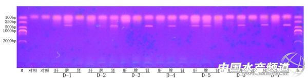 結果:經28℃培養24小時,7尾病魚均無細菌感染(見圖6),病毒檢測7尾魚彈狀病毒均呈陽性(見圖7)、蛙虹彩病毒均呈陰性(見圖8),組織病理切片結果顯示:肝臟嚴重淤血,空泡變性,肝細胞界限不明,細胞壞死(見圖9),脾臟輕微淤血,嚴重壞死(見圖10),腎臟淤血,腎小管萎縮,腎間組織細胞多壞死(見圖11)。 分析:1、珠三角地區養殖加州鱸苗種經常發生一種急性死亡的疾病,死亡量大,用抗菌藥物無效,從流行病學特點和臨床癥狀上判斷很可能是病毒引起的。本病例通過PCR方法對發病魚做了彈狀病毒檢測,從加州鱸魚苗樣品中擴增出與預擴增片段(372bp)大小相同的目的條帶,目的條帶通過正反兩次測序,其序列與GenBank中鱖魚彈狀病毒(SCRV)的基因序列同源性為96.3%,證實加州鱸魚感染了彈狀病毒。在珠三角大量養殖的鱖魚、雜交鱧發生的彈狀病毒病已經得到證實,加州鱸的這種急性死亡初步診斷也是由彈狀病毒引起的。 2、爛身病是加州鱸的常見病和多發病,諾卡氏菌、氣單胞菌都能引起,有研究者報道蛙虹彩病毒也能引起,本病例所取的7尾病魚都有爛身癥狀,從檢測結果來看,無細菌感染和蛙虹彩病毒感染,因此本病例的“爛身”很可能與彈狀病毒感染有關。 作者簡介:雷燕,就職于廣州利洋水產科技有限公司研究所,主要從事水產動物常見病毒病、細菌病的診斷與研究工作。 中國水產頻道獨家報道,轉載請說明出處《水產前沿》雜志 www.fuqitext.com ,違者追究法律責任, 謝謝合作。