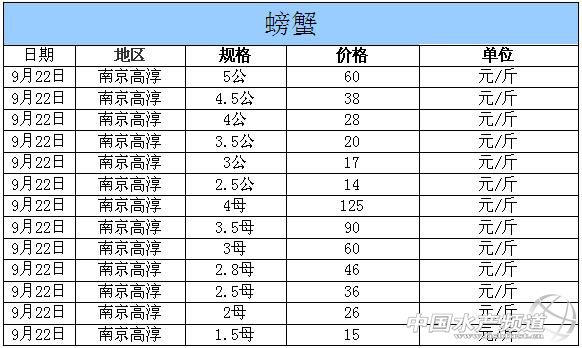 中國水產頻道獨家報道,據網友提供消息,2014年9月22日江蘇高淳河蟹價格行情如下: 南京高淳河蟹價格信息由南京康旭科技有限公司沈先生(電話:13770896772,網站:http://shop110368651.taobao.com)提供,由于價格波動及訂貨量影響,以上價格為收購價格,實際價格請聯系電話。 |