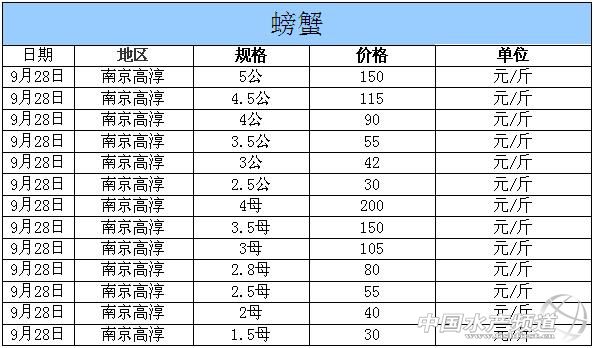 中國水產頻道獨家報道,據網友提供消息,2014年9月28日江蘇高淳河蟹價格行情如下: 南京高淳河蟹價格信息由南京康旭科技有限公司沈先生(電話:13770896772,網站:http://shop110368651.taobao.com)提供,由于價格波動及訂貨量影響,以上價格為收購價格,實際價格請聯系電話。 |