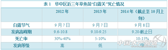 文/圖 海大集團服務營銷中心 張波 一、草魚苗“白露關(guān)” “白露”是九月的頭一個節(jié)氣,諺語曰“白露秋風夜,一夜涼一夜”。這時,白天最高氣溫雖然仍達三十幾度,可是夜晚之后最低氣溫只有二十多度,兩者之間的溫度差達十多度。白露時節(jié)前后,草魚苗會出現(xiàn)發(fā)病死亡的現(xiàn)象,養(yǎng)殖戶稱之為草魚苗的“白露關(guān)”。 近三年草魚苗發(fā)病從“白露”開始,發(fā)病高峰期主要集中在9月中下旬(見表1)。2012年草魚苗發(fā)病非常嚴重,市場整體成活率只有60%-70%;2013年發(fā)病情況良好,苗種成活率非常高,這也導致了年底草魚苗價格低迷;2014年受異常天氣的影響(八九月份陰雨天多),草魚苗的發(fā)病時間推后半個多月,9月下旬草魚苗死亡數(shù)量開始上升,嚴重的日死亡尾數(shù)達到300-500尾/天。截止至10月上旬,發(fā)病仍在持續(xù)。 表1 華中區(qū)近三年草魚苗“白露關(guān)”死亡情況 草魚苗“白露關(guān)”發(fā)病周期長(1個月),發(fā)病率廣,死亡率大,發(fā)病癥狀多樣,診斷治療困難。筆者通過近三年對草魚苗“白露關(guān)”疾病的跟蹤調(diào)研,分析得出白露時節(jié)造成草魚苗發(fā)病的主要原因是溫差應激過大、病原微生物入侵以及魚體代謝器官受損等三方面引起的。 二、草魚苗種白露關(guān)發(fā)病原因分析 1.溫差應激過大 白露前后天氣轉(zhuǎn)冷,水溫迅速降低,晝夜溫差加大,特別是遇到大風、降雨等異常天氣,水溫變化非常劇烈,而每一次溫差的巨大變化都會帶來草魚苗的發(fā)病高峰(見圖1),圖中顯示了2012年白露時期草魚苗4個發(fā)病高峰期與水溫變化的關(guān)系。通過數(shù)據(jù)分析發(fā)現(xiàn),當24小時內(nèi)水溫變化超過2℃時,草魚苗非常容易發(fā)病。 圖 1 2012年湖北仙桃區(qū)域白露前后池塘水溫變化 養(yǎng)殖戶對于白露時節(jié)的劇烈變溫后草魚苗發(fā)病也非常敏感,戲稱草魚苗也會“感冒”。這是因為魚是變溫動物,水溫變化直接影響體溫從而引起生理變化。溫差應激過大會造成魚體腸道損傷,腸粘膜通透性增加,抗原及毒性物質(zhì)滲入;同時溫差應激也會造成免疫系統(tǒng)損傷,魚體的血液指標發(fā)生一系列的變化,包括血糖、白細胞、血栓細胞、紅細胞、免疫因子以及激素等都有不同程度的影響,魚體免疫力下降,對疾病敏感性增加。 2.病原微生物入侵 進入白露,隨著氣溫的降低,水溫也開始下降,一方面水溫處于25-30℃之間,非常適合病毒、細菌以及寄生蟲等繁殖;另一方面,表層水溫的下降帶來了底層有害物質(zhì)和病原的上浮更容易使魚感染疾病。這個階段,危害草魚苗的主要疾病有病毒性出血病、細菌性爛鰓腸炎以及車輪蟲病。 (1)病毒性出血病 病毒性出血病病原是草魚呼腸孤病毒,主要感染10cm左右的1齡草魚苗,而白露前后草魚苗正好處于這個階段。筆者在湖北仙桃和洪湖等區(qū)域發(fā)現(xiàn)十多個病例,其主要癥狀是鰓蓋、眼眶四周、下頜及口腔有點狀出血,腸道充血但柔韌性好,未見肌肉出血,鰓完好(見圖2);另外病毒性出血病不但可以使草魚苗直接致死,而且可以引發(fā)繼發(fā)性細菌感染。白露時期該病具有一定區(qū)域性,但是一旦發(fā)病,死亡量極大,而且不易治療。 圖2 草魚病毒性出血病 (2)細菌性爛鰓腸炎 根據(jù)筆者調(diào)研,細菌性爛鰓和腸炎是白露時期草魚苗發(fā)病的主要病因。爛鰓以開天窗,鰓絲腐爛,末端帶泥,嚴重時鰓軟骨外露,鰓蓋內(nèi)側(cè)表面充血等癥狀為主;腸炎以腹部膨大,肛門紅腫,腸道充氣充血化膿等癥狀為主。白露時期該病發(fā)病非常普遍,死亡率大;發(fā)病初期通過消毒和藥物內(nèi)服較易控制,但是容易反彈發(fā)作,而且后期難以控制。 圖3 草魚細菌性爛鰓和腸炎 (3)車輪蟲 白露時期草魚苗寄生蟲感染以車輪蟲為主。根據(jù)筆者調(diào)研和鏡檢發(fā)現(xiàn),白露階段車輪蟲的檢出率在90%以上,但具體危害程度需要根據(jù)寄生的數(shù)量判斷,一般一個視野里超過10個(10倍鏡下)則會引起苗塘草魚苗死亡?紤]到車輪蟲寄生會造成鰓部的機械損傷從而引起繼發(fā)性感染,因此,對于車輪蟲的控制也不容忽視。 3.代謝器官受損 白露時期草魚苗死亡還有一個特點,不論池塘中魚苗的規(guī)格是大還是小,死的一般是池塘中生長較快的“頭子魚”。養(yǎng)殖戶中流傳一種說法,認為白露時節(jié)死魚與草魚苗的規(guī)格相關(guān)。但經(jīng)過筆者的調(diào)查發(fā)現(xiàn),規(guī)格較小的魚苗也會出現(xiàn)死亡現(xiàn)象。其實死“頭子魚”現(xiàn)象背后的真實原因與投喂管理和草魚苗代謝器官健康相關(guān)。由于草魚苗的數(shù)量和重量以及吃食情況不易判斷,養(yǎng)殖戶對草魚苗的投喂管理相當混亂,白露前后投喂量大的養(yǎng)殖戶投餌率達到6%-8%,低的只有1%-2%。筆者2013年調(diào)研統(tǒng)計發(fā)現(xiàn),湖北洪湖區(qū)域白露時期發(fā)病草魚苗塘的平均投餌率為4.03%;而未發(fā)病的草魚苗塘投餌率只有2.5%。通過對病魚解剖可見腸道無食,肝臟腫脹,呈白色、綠色,腹水嚴重;并且發(fā)病的同一池塘中,規(guī)格差異越大,其“頭子魚”的肝膽腸功能越差。因此,在白露時期做好投喂管理,加強魚體代謝器官的保健非常重要。 三、草魚苗“白露關(guān)”疾病預防 “疾病重在預防”,特別是在白露