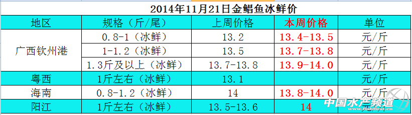 2014年11月21日廣西、湛江、海南、陽江金鯧魚碼頭價