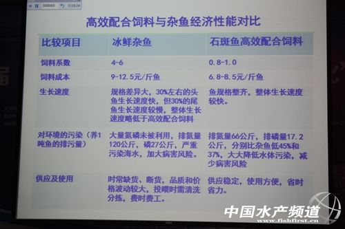 文/中國水產頻道 楊明 人工配合飼料發展的3個階段 報告中麥老師將石斑魚人工配合飼料的發展進程分為三個階段,2005年以前配合飼料比例少于1%,石斑魚養殖幾乎全部使用冰鮮雜魚;2006-2011年配合飼料比例提升至5%,標苗期已廣泛使用配合飼料,但是養成期仍以冰鮮雜魚為主;2012-2014年配合飼料比例從5%提升至10%,步入快速成長期,優質高效配合飼料已廣泛應用于標苗期和養成前期,并快速向養成中后期延伸。 配合飼料相對于冰鮮投喂的優勢 麥老師指出,石斑魚年產量約9萬噸,每年消耗40萬噸野雜魚,占全國水產投喂野雜魚總量的10%,石斑魚配合飼料發展嚴重滯后。造成該現象的原因之一是老百姓認為魚吃魚會長得更快,麥老師指出這是一種錯覺,投喂冰鮮野雜魚只會使頭魚規格大,但人工配合飼料會使石斑魚規格更加整齊,且成本可降低16-28%。 據海南瓊海椰林合順養殖場的實驗數據,始重175g的珍珠龍膽每天投喂1次人工配合飼料,分別在35天、70、105稱重,結果顯示,與直接投喂野雜魚比較,投喂某人工配合飼料可使石斑魚的增重率提高77.5-107%,養殖成本由9-12.5元/斤魚降到6.8-8.5元/斤魚,磷排泄減少51%、氮排泄減少60%,節約44-52%的野生雜魚資源。通過上述數據,麥老師指出,配合飼料必將全面取代冰鮮雜魚,且飼料系數在0.8-1.4之間都屬于正常,無需一定小于1.0。 圖2 高效人工配合飼料和冰鮮野雜魚效果對比 圖3 投喂參數推薦 當前存在的三個問題 麥老師報告中指出,石斑魚營養與飼料開發中還存在三個問題: 1.石斑魚營養缺乏全面系統的研究,營養參數還不完善。目前的研究主要集中于青斑幼魚,缺乏不同生長階段青斑營養需求的系統研究。 2.配合飼料制作工藝亟待提高。工藝問題要從魚的需求來研究,而不是人,不必考慮外形美觀等問題。 3.應用技術推廣不力。 中國水產頻道(www.fuqitext.com)獨家報道,轉載請說明出處,違者追究法律責任, 謝謝合作。 【關鍵字】:石斑魚 麥康森 水產養殖 |