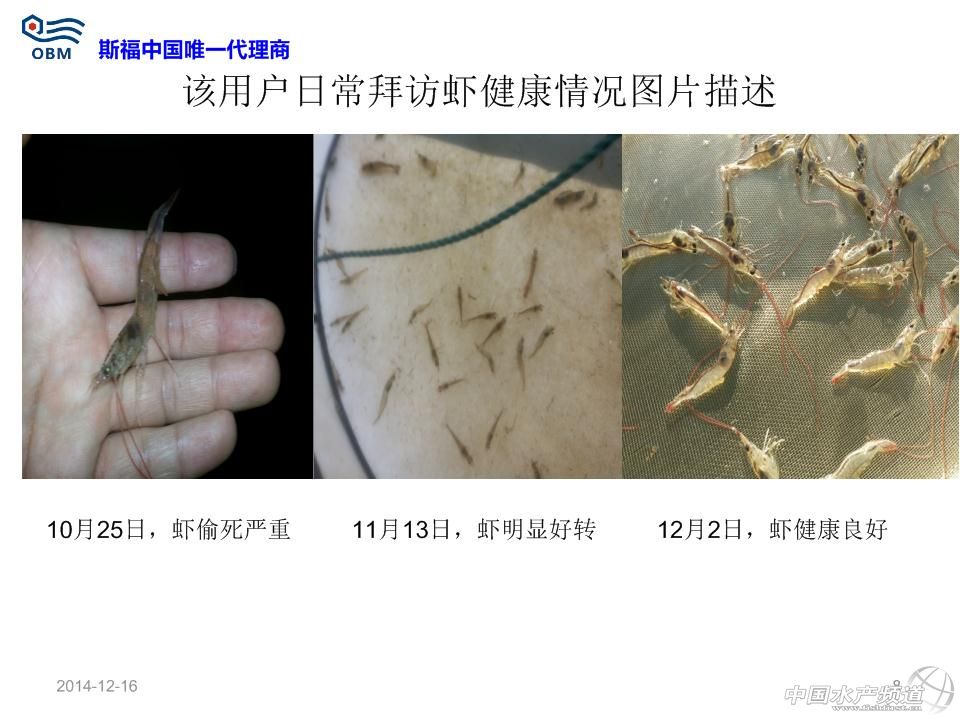 短中鏈脂肪酸單甘油酯(商品名:斯福)用于防治對蝦偷死及白便效果數據 溫馨提示:文中部分內容以圖片形式呈現! 本文主要分享了粵西、廣西、粵東、珠三角及福建漳州等地區對蝦養殖狀況,其中很多數據值得我們去分析。同樣,本文也涉及到在蝦病暴發時,使用“斯福”產品所帶來的改變。 2014年冬棚蝦拌料液體斯福效果 液體斯福產品提高對蝦健康度,從而提高蝦的采食量(每天遞增1-2斤)、體重增加和生長速度;液體斯福產品可使對蝦從偷死病及白便病得以恢復,但不同地區用戶反映的效果不同與操作方法及蝦病嚴重程度有關;數據證實液體斯福產品每天持續使用且使用時間越長越有助于提高蝦良好體質的提高。 標準使用方法 使用量為每餐飼料量的1%,即10公斤/噸飼料,全程每餐拌料使用。目前包裝為20kg/桶。 以每餐喂1斤飼料為例,具體步驟如下(嚴格按照步驟順序操作): 1、稱取0.1兩斯福(5g,約1/5斯福的瓶蓋)與1兩水(50g)混合為水溶劑; 2、將上面的水溶劑放到干凈盆里并與1斤飼料混勻,晾5-10分鐘; 3、稱取0.1兩豆油(5g,約1/4豆油的瓶蓋)與0.5兩水(25g)混合為水溶劑,然后與上面的半干燥的1.1斤飼料混勻,晾20-30分鐘到干燥,然后去投喂。 注意事項: 斯福自帶的的瓶蓋子滿瓶蓋為0.5兩(25g)。豆油自帶的瓶蓋為0.25兩(12.5g)左右。礦泉水滿瓶約1斤(500g)左右,用戶拌料開口粉料時候,上述水適當增加一倍;產品每次使用后注意擰緊瓶蓋,并保存在陰涼干燥地方;可以提前一天拌第二天全天所用的飼料并晾干過夜,以減少每餐拌料工作量;飼料投喂時,不允許再次加水到飼料后進行潑撒投喂,而應直接干撒投喂飼料。 市場用戶常見的操作不規范現象-1:投喂拌料斯福并晾干的飼料的時候,再次加水進行投喂 誤區:認為潑撒飼料時候不再加水,會使飼料漂浮在池塘水表面,從而造成浪費且污染水體 正確做法為:直接潑撒投喂,若再加水會使之前拌的油和飼料分開,從而斯福(親水)溶解一部分在水里;無論粉狀飼料還是開口料都是顆粒,飼料加水后已使飼料表面張力擴大,且飼料密度大于水,投撒池塘后,最多20分鐘就會下沉(浮性膨化料除外)。 市場用戶常見的操作不規范現象-2:直接分別把斯福和水倒在盛有飼料大盆的角上進行拌料 誤區:認為比較省事 正確做法為:按照規定稱取斯福和水進行混合,并務必攪拌均勻為水溶劑;稱取對應的飼料,然后把上述的水溶劑加入飼料后拌勻;拌勻過程中,尤其是拌料開口粉料會有結塊現象,應該認真把小塊都揉開,否則飼料局部的斯福量根本不均勻;如果需要添加內服藥(保肝、治療腸炎、VC等),也應該與斯福產品及水同步混勻;添加的藥物如果是液體的應同時減掉稀釋斯福的水的用量;上述步驟混勻揉開所有小結塊后,晾干10分鐘以上;開口粉料拌料時候水酌情增加,但不宜過多,否則更易結塊。 市場用戶常見的操作不規范現象-3:直接把斯福、水和豆油簡單混合后與飼料拌料 誤區:認為比較省事 正確做法為:按照規定稱取斯福和水進行混合,并攪拌均勻為水溶劑;稱取對應的飼料,然后把上述的水溶劑加入飼料后拌勻,確保沒有任何小的結塊;上述步驟混勻揉開所有小結塊后,晾干10分鐘以上;按照規定稱取豆油和水稀釋后,快速逐漸噴灑到上述的飼料,并拌勻,確保沒有任何結塊;最佳的做法是頭一天晚上把第二天全天所用的飼料全部拌料,晾干一晚上,第二天每餐使用時直接去干撒投喂。 市場用戶常見的操作不規范現象-4:不持續使用產品 誤區:認為斯福產品是治病的藥物,蝦發病時候加數倍量去用就可以快速治病,平時蝦健康時候不用,覺得浪費錢 正確做法為:斯福產品是一種飼料添加劑,屬于營養性添加劑,不是藥物范疇,不會像某些藥物那樣產生抗藥性;日常堅持每天使用,對預防蝦發病具有很好的作用;即使發病的蝦開始用產品,不建議增加數倍量,未必效果顯著,可以增加一倍量,每天每餐按照操作使用,一般2周內均不同程度有明顯改善現象;且產品本身為脂肪酸類范疇,可以提供能量給蝦。 市場用戶常見的操作不規范現象-5:發病蝦塘不注重合理使用科學方法去改善水質環境 誤區:發病后,加數倍量去用各種藥物喂蝦,且大量外潑藥物,認為可以快速治病,平時蝦健康時候不用,覺得浪費錢 正確做法為:傳統意識上是藥三分毒,長期用藥均會產生抗藥性;但是目前蝦發病往往和水質惡化有很大關系;日常應每周注重藻菌相平衡;使用益生菌類產品調控水質;對于發病的蝦塘,用戶在使用斯福內服時候,應該增加水質調控(勿用刺激性強藥物消毒,而應該給其解毒和平緩處理)。(中國水產頻道獨家報道,轉載請注明出處!) 【關鍵字】:南美白對蝦 白便 偷死 水產養殖 |