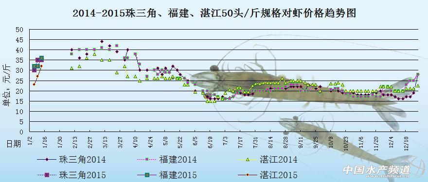 文/中國水產(chǎn)頻道 張靜 中國水產(chǎn)頻道原創(chuàng)報(bào)道,下圖是2014年和2015年珠三角地區(qū)、湛江地區(qū)和福建地區(qū)50頭/斤規(guī)格對蝦的價(jià)格趨勢圖。2015年年初,元旦剛過,各地存塘的蝦非常少,各地蝦價(jià)都在飆漲。具體價(jià)格趨勢如下: 據(jù)悉,本周各地的對蝦市場銷售量并不理想,但部分養(yǎng)殖戶存在待價(jià)而沽的心態(tài),也有部分養(yǎng)殖戶是直接抬高蝦價(jià)賣蝦,所以近期各地的對蝦出塘量都很少,蝦價(jià)方面也是持續(xù)上漲,預(yù)計(jì)短期內(nèi)蝦價(jià)還會有上漲的空間。具體價(jià)格如下: 據(jù)珠海地區(qū)的蝦中強(qiáng)哥消息,現(xiàn)在珠海地區(qū)的對蝦市場銷售量很差,珠海的棚蝦多數(shù)規(guī)格是在80-120頭/斤這個范圍內(nèi),白水塘對蝦捉完之后,棚蝦還未達(dá)上市規(guī)格,出現(xiàn)青黃不接的現(xiàn)象,整個市場可以說是供不應(yīng)求,但是近期很多養(yǎng)殖戶抬高蝦價(jià)賣蝦,致使蝦中無蝦可收。對蝦塘邊價(jià)高,但是市場的銷售價(jià)格卻是低于塘邊價(jià),例如珠海地區(qū)50頭/斤規(guī)格的對蝦塘邊價(jià)是35元,但在東莞市場50頭/斤規(guī)格的對蝦市場價(jià)格才賣32元,對此很多蝦中都不愿意收購對蝦。現(xiàn)在的蝦價(jià)一直高漲,短期內(nèi)蝦價(jià)還會有上漲的可能,但是市場也有可能接受不了不斷高漲的蝦價(jià),預(yù)計(jì)短期內(nèi)的蝦價(jià)漲幅不會太高。(以上價(jià)格及觀點(diǎn)僅供參考) 【關(guān)鍵字】: 對蝦 對蝦價(jià)格 對蝦養(yǎng)殖 中國水產(chǎn)頻道原創(chuàng)報(bào)道,轉(zhuǎn)載請說明出處 中國水產(chǎn)頻道 www.fuqitext.com ,違者追究法律責(zé)任, 謝謝合作。 |