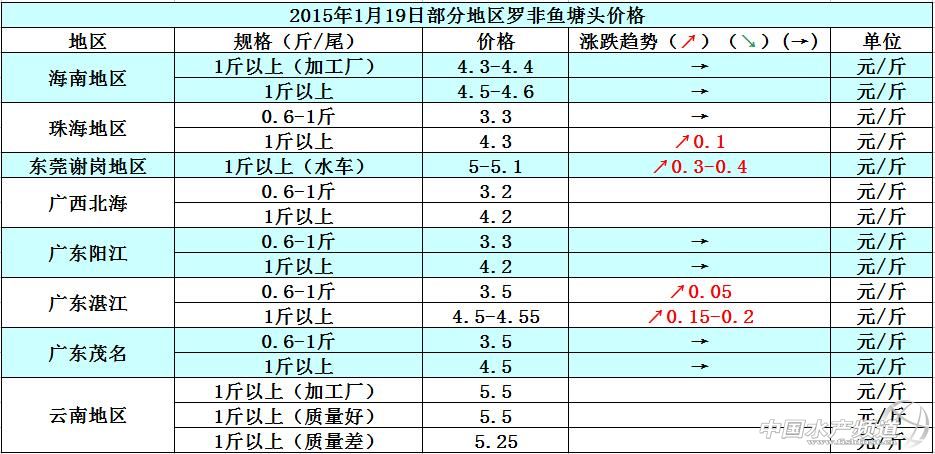 文/中國水產頻道張靜 中國水產頻道原創報道,以下是海南地區、湛江地區、陽江地區、茂名地區2014年和2015年1斤以上/尾規格羅非魚的價格趨勢圖。圖中可以很明顯的看出,2015年1月初,元旦過后,各地的銷售行情依舊低迷,魚價毫無起色,預計后市魚價漲幅空間不大。1月中下旬,部分地區的魚價稍有上漲,但是行情依舊不理想,整體銷售量還是偏小。具體價格趨勢如下: 據悉,最近幾天部分地區的魚價稍有上漲,但整體的銷售量方面還是偏小,預計后市魚價可能是趨向平穩為主,價格上漲空間不會太大。雖然近幾天魚價上漲空間不大,但還是很好的刺激了養殖戶的心態,養殖戶的賣魚意愿有所加強。具體價格如下: 據業內人士了解,最近粵西湛江地區的魚價相比上周上漲了0.15-0.2元/斤,部分廣西地區的魚中也跑到湛江來收購羅非魚,之前因為魚價低迷,養殖戶的賣魚意愿不大,最近幾天養殖戶看到魚價有上漲的跡象,賣魚意愿也有所增強,都開始加大投喂量去喂養羅非魚。茂名地區、陽江地區的情況都相差不大,魚價變化不大,一個多月以來魚價都是相對平穩,所以養殖戶出魚少,整體銷售量不大。預計后市粵西地區的魚價都將會是持平為主,價格上漲空間不大。(以上價格及觀點僅供參考) 中國水產頻道原創報道,轉載請說明出處 中國水產頻道 www.fuqitext.com ,違者追究法律責任, 謝謝合作。 |