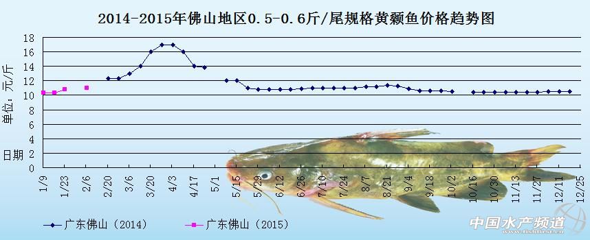 文/中國水產頻道 張靜 中國水產頻道原創報道,下圖是2014年、2015年廣東佛山地區0.5-0.6斤/尾規格黃顙魚的價格趨勢圖,由圖中可以看出2015年元旦之后,各地的市場銷售量差,魚價方面也是處于相對平穩的狀態,預計后市整體魚價上漲空間不大。1月中旬開始,黃顙魚的市場需求量有所增加,廣東魚價也稍微上漲,預計后市魚價將會處于穩中有漲的趨勢。1月下旬,因為天氣寒冷,外省地區的魚塘無法刮魚,部分魚中選擇到廣東地區收購黃顙魚,致使廣東地區的黃顙魚走量大大增加,魚價也明顯上漲。具體趨勢如下: 據悉,本周各地的市場銷售量逐漸增多,魚價方面也在持續上漲,現在外省地區因為天氣原因,出魚量很少,供應市場的主要還是以廣東地區的黃顙魚為主。廣東地區的魚價不斷上漲,但是很多養殖戶還是保持觀望的態度,都在期待魚價高漲再賣魚,現在很多魚中都在預訂黃顙魚到春節期間在捉,預訂的魚價比現場捉的魚價要高出0.3-0.5元/斤。具體價格如下: 【關鍵字】: 黃顙魚 黃顙魚價格 黃顙魚養殖 (中國水產頻道水產價格信息共享Q群:245296163,歡迎提供各種水產品一線價格信息,聯系QQ:139020150) |