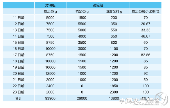 摘 要:本研究由湛江市科技項目“卵形鯧鲹開口餌料研發(fā)及產業(yè)化”資助,主要探討使用大黃魚微囊餌料替代橈足類對大黃魚仔稚魚生長及成活率的影響。研究結果顯示,從11日齡開始逐漸替代橈足類,在總替代水平為69.1%的條件下,對大黃魚仔稚魚體長、體重及成活率均未造成顯著影響。該結果對生產及下一步的研究都有較強的借鑒意義。 文/圖 上海艾美爾生物工程有限公司 孫瑞椒 寧德富發(fā)水產有限公司 陳佳 柯巧珍 廣東恒興飼料實業(yè)股份有限公司 劉興旺 中國水產頻道獨家報道: 在海水養(yǎng)殖魚類的苗種培養(yǎng)階段,以人工微顆粒飼料替代鮮活生物餌料的研究始終沒有間斷。在我國,海水魚苗種培育早期階段主要依賴輪蟲、鹵蟲無節(jié)幼體、枝角類和橈足類等生物餌料,存在成本高昂、產量和質量不穩(wěn)定及攜帶病原微生物等缺點。在大黃魚育苗過程中,橈足類大概投喂13-30天,占育苗成本的比重達到60-70%,且由于天然橈足類大小規(guī)格不一,給投喂操作及大黃魚攝食造成困難。因此,研究開發(fā)適用于大黃魚仔稚魚的優(yōu)質高效人工微顆粒飼料,滿足大黃魚仔稚魚營養(yǎng)需求和攝食習性,從而促進海水魚育苗生產穩(wěn)定化、規(guī)模化和專業(yè)化具有非常重要的意義。本研究即是探討使用大黃魚微囊餌料替代橈足類對大黃魚仔稚魚生長及成活率的影響,從而評估微囊餌料在大黃魚育苗及橈足類替代領域的應用前景。 一、材料與方法 1、試驗飼料 大黃魚微囊餌料以鹵蟲成蟲干粉及進口超級蒸汽魚粉為主要蛋白源,以高濃縮萃取EPA和DHA作為主要脂肪源,同時添加了水解魚蛋白等多種海洋生物活性物質。所有原料混合均勻后經過超微粉碎機粉粹(100%過300目),以流化床工藝包膜制粒,包膜壁材為明膠+卡拉膠。在本研究中使用的微囊餌料共有3種粒徑,分別為50-120μm,120-180μm和180-250μm。飼料粗蛋白為52%,粗脂肪為10%,飼料常規(guī)及氨基酸組成如表1所示。 2、飼養(yǎng)管理 養(yǎng)殖試驗在寧德富發(fā)水產有限公司進行,試驗水體為44m3的育苗水泥池,池深1.7m,鹽度28‰,溫度20-22℃,每天換水100%。每個水泥池投放受精卵3.4kg(約272萬粒卵)。對照組和試驗組各投喂1個水泥池。對照組按照常規(guī)育苗流程正常投喂,即2-6日齡投喂輪蟲,5-10日齡投喂鹵蟲無節(jié)幼體,11-23日齡投喂橈足類,后續(xù)使用開口飼料進行投喂。試驗組在第11日齡開始使用微囊餌料逐漸替代育苗過程中的橈足類,自11日齡至23日齡對照組和試驗組各自投喂橈足類和微囊餌料的量如表2所示,微囊餌料總共替代了69.1%的橈足類。23日齡后,對照組和試驗組均投喂微囊餌料至48日齡(180-250μm)。48日齡時,大黃魚魚苗規(guī)格約2cm,此時將對照組和試驗組分別轉移到海水網箱中進行標粗,投喂1.0mm的膨化飼料,經過一個大潮即14天時間結束試驗。 3、樣品收集及統(tǒng)計分析 在大黃魚仔稚魚30日齡時分別抽取對照組和試驗組30尾大黃魚仔稚魚,測量每尾大黃魚的體長和體重數(shù)據(jù)。將仔稚魚在海水網箱中養(yǎng)殖14天后,對照組和試驗組每組抽取100尾大黃魚,測定大黃魚的平均體長、體重,同時稱量對照組和試驗組總重并根據(jù)總重測定大黃魚成活率。 大黃魚成活參照以下公式計算:成活率(%) =(試驗結束時尾數(shù)/試驗初始卵數(shù))×100 二、結果與討論 微囊餌料替代橈足類后對大黃魚體長、體重及成活率的影響如表3所示。試驗30天后,對照組平均體長19.5mm,試驗組19.8mm,對照組平均體重56mg,試驗組59mg;試驗62天后,對照組平均體長36.45mm,試驗組33.95mm,對照組平均體重402mg,試驗組448mg。從以上結果可以看出,使用微囊餌料替代69.1%的橈足類19及51天后,大黃魚體長及體重均差異不大。該結果在一定程度上證明該微囊餌料與橈足類相比從營養(yǎng)上可以滿足大黃魚的正常生長發(fā)育。 對苗種培育來說,成活率是影響單位成本的最重要因素,因此是評價育苗管理及餌料效果的最重要指標。在本研究中,經過62天的試驗,對照組成活率為20.1%,而試驗組成活率為21.4%。從以上結果可以看出,使用微囊餌料替代69.1%的橈足類在一定程度上提高了大黃魚的成活率。 在海水魚育苗過程中,只有同時研究仔稚魚的消化生理和營養(yǎng)需求,同時改進餌料生產工藝,才能最終達到成功替代鮮活生物餌料的目的。在本研究中,通過飼料營養(yǎng)的合理配比,同時采用國際上較先進的微囊包膜制粒工藝,得到了水中懸浮性和穩(wěn)定性均較好的微囊顆粒。試驗結果顯示,從11日齡開始逐漸替代橈足類在總替代水平為69.1%的條件下,對大黃魚仔稚魚體長、體重及成活率均未造成顯著影響。由于試驗條件限制,本研究沒有設計重復以能夠進行更好的數(shù)據(jù)分析。但是,由于試驗是在生產條件下進行的,因此該結果對生產及下一步的研究都有較強的借鑒意義。微囊餌料替代橈足類及鹵蟲無節(jié)幼體等生物餌料的研究值得進一步進行。 圖1 試驗水泥池及微囊餌料投喂 圖2 發(fā)育中的仔稚魚 圖3 攝食微囊餌料后拖便的大黃魚仔稚魚 中國水產頻道獨家報道,轉載請說明出處《水產前沿》雜志 www.fuqitext.com ,違者追究法律責任, 謝謝合作。 【關鍵字】:水產網 大黃魚 生物餌料 飼料 |