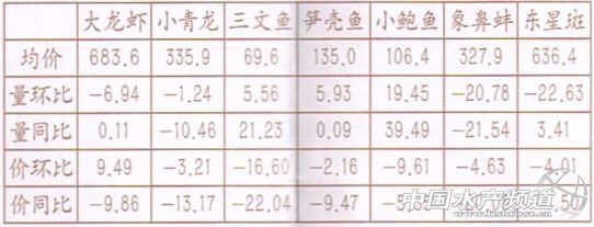 中國水產(chǎn)頻道報(bào)道,上海銅川水產(chǎn)市場三月銷售總量是8103噸, 環(huán)比下降-4.57%,同比下降-10.6%;銷售總額 62541萬元,環(huán)比下降-4.16%,同比下降-5.18%; 加權(quán)月平均價(jià)77.20元.環(huán)比下降_8.55%,同比回落-17.97%。市場銷售呈現(xiàn)量價(jià)齊降,進(jìn)銷平淡。 蝦類產(chǎn)品月度:均價(jià)單位:元/公斤環(huán)、同比單位:% 本月蝦類產(chǎn)品總體銷售呈現(xiàn)量能和價(jià)格下降, 特別是基圍壞和垃節(jié)奸.由于今年春季南方氣溫適宜,供應(yīng)量相對充足,且由于需求不足,價(jià)格下降明顯,待等本地蝦的31后逐步上市,蝦類價(jià)格還 會繼續(xù)回落。小龍蝦同云年一樣由于氣候溫暖上 市較早,20-30克/只規(guī)珞的價(jià)格保持在55-60元/公斤,銷售方向主要是酒店餐館,價(jià)格基本同去年持平,由于今年氣溫比較適宜小龍蝦的生長,等后市大量上市時價(jià)格會有明顯回落。 家常類產(chǎn)品月度:均價(jià)單.11元/公斤環(huán)、同比單位:% 家常類水產(chǎn)品本月漲趺互現(xiàn),由于今年鱸魚、 鱖魚供應(yīng)充足,價(jià)格基本保持平穩(wěn)。三月是刀魚 上市季,今年由于上市量能較去年比有所增加, 價(jià)格較去年有較大下降,目前市場一兩左右的在 200—400 元/500克,1.5-1.9 兩左右的 600—900元 /500克,三兩左右的1200—1500元/500克,銷售均價(jià)同比下降近5成。 蟹類產(chǎn)品月度:均價(jià)單位:元/公斤環(huán)、同比單位:% 本月蟹類產(chǎn)品主體趨勢是量縮價(jià)降,特別是 梭子蟹和紅花蟹,逭著供應(yīng)量的回升,價(jià)格回落最為明顯。珍寶蟹由于進(jìn)口價(jià)格比較高,銷售價(jià)格基本同去年持平。 中高檔水產(chǎn)類月度:均價(jià)單位:元/公斤環(huán)、同比單位:% 本月中高檔水產(chǎn)品整體表現(xiàn)為量價(jià)齊降特征, 大龍蝦由于國外供應(yīng)價(jià)格高,國內(nèi)價(jià)格可能還要繼續(xù)保持高位運(yùn)行;但由于即將進(jìn)入傳統(tǒng)的消費(fèi)淡季,后市量價(jià)有下行空間。 【關(guān)鍵字】:價(jià)格 水產(chǎn)市場 水產(chǎn)品 |