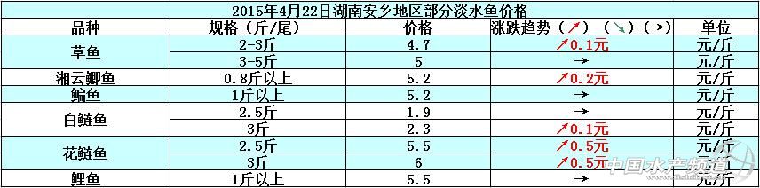中國水產頻道原創報道,據網友提供消息,下圖就是2015年4月22日湖南安鄉地區部分淡水魚的塘頭價: