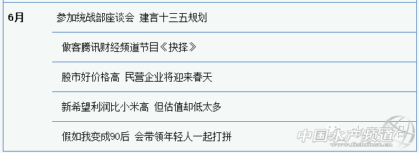 摘要: 薛華:功過是非 交由市場評說。新希望劉永好:身退心不退 2015年找風口、搶風口。邵根伙:不給員工股份的老板不是好老板,不敢要股份的員工不是好員工。陳春花:作為女性很柔軟,相比男性更堅韌。陶一山:做世界級收 ...
