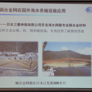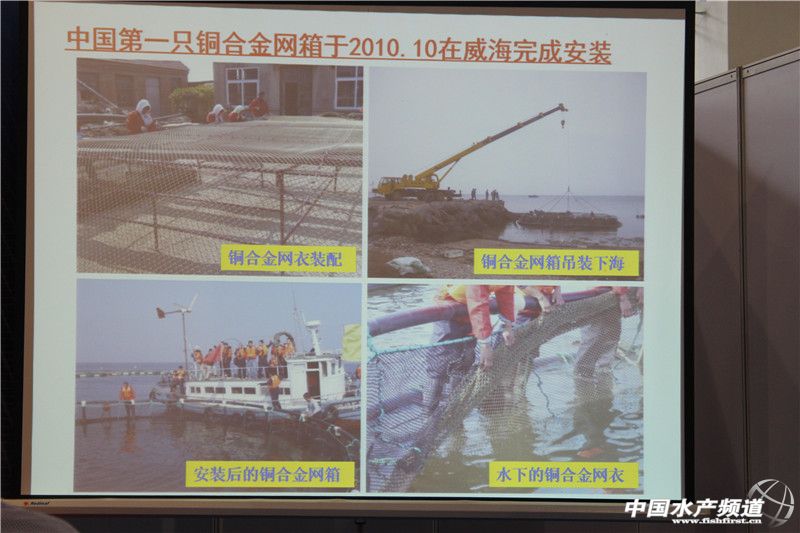 | 中國(guó)水產(chǎn)頻道獨(dú)家報(bào)道,8月28日下午,中國(guó)漁業(yè)協(xié)會(huì)、中國(guó)水產(chǎn)科學(xué)研究院東海水產(chǎn)研究所和國(guó)際銅業(yè)協(xié)會(huì)在廣州琶洲中國(guó)進(jìn)出口商品交易會(huì)展館聯(lián)合主辦“銅合金網(wǎng)衣網(wǎng)箱海水健康養(yǎng)殖高峰論壇”。 “銅合金網(wǎng)衣網(wǎng)箱海水健康養(yǎng)殖高峰論壇”嘉賓 本次論壇主要探討了銅合金網(wǎng)衣網(wǎng)箱在海水養(yǎng)殖行業(yè)中的應(yīng)用。國(guó)際銅業(yè)協(xié)會(huì)、中國(guó)區(qū)家電及技術(shù)項(xiàng)目總監(jiān)高屹峰、中國(guó)漁業(yè)協(xié)會(huì)副秘書長(zhǎng)郭繼娥、中國(guó)水產(chǎn)科學(xué)研究院東海水產(chǎn)研究所副所長(zhǎng)王魯民出席了此次論壇。此外,論壇還邀請(qǐng)了德國(guó)Wieland、日本三菱伸銅株式會(huì)社、中鋁洛銅三家企業(yè)進(jìn)行銅合金網(wǎng)衣網(wǎng)箱應(yīng)用的案例介紹和相關(guān)技術(shù)交流。 “銅合金做的網(wǎng)箱,還是太貴了吧!”“銅合金做的網(wǎng)箱得多重?使用的時(shí)候怎么方便呢?”“真的能夠抗菌?沒有污損生物附著?”“它靠什么來實(shí)現(xiàn)比一般的傳統(tǒng)網(wǎng)箱更加抗風(fēng)浪?” 會(huì)議正式開始之前,人們邊拿著宣傳冊(cè)細(xì)細(xì)翻看,邊談?wù)撝髯缘囊苫蟆o@然,近年來深水網(wǎng)箱的發(fā)展腳步有所加快,但“銅合金網(wǎng)衣網(wǎng)箱”對(duì)業(yè)內(nèi)業(yè)外人士來說仍然是一個(gè)新名詞。 參會(huì)者細(xì)細(xì)打量著網(wǎng)衣材質(zhì) 然而,銅合金網(wǎng)衣網(wǎng)箱在國(guó)外已有多年利用歷史。會(huì)上,中國(guó)水產(chǎn)科學(xué)研究院東海水產(chǎn)研究所副所長(zhǎng)王魯民介紹到銅合金網(wǎng)衣網(wǎng)箱在美國(guó)、日本、智利、希臘、土耳其、挪威、越南等地都不少應(yīng)用,養(yǎng)殖品種涉及軍曹魚、黃條鰤、大西洋鱈魚、鮭魚等。 王魯民指出,我國(guó)的“銅合金網(wǎng)衣網(wǎng)箱海水養(yǎng)殖項(xiàng)目”從2009年開始推進(jìn),項(xiàng)目依托中國(guó)水產(chǎn)科學(xué)院東海水產(chǎn)研究所和中國(guó)漁業(yè)協(xié)會(huì)等科研單位和機(jī)構(gòu),聯(lián)合國(guó)內(nèi)外知名的網(wǎng)箱養(yǎng)殖設(shè)施設(shè)計(jì)、生產(chǎn)、施工和網(wǎng)箱養(yǎng)殖企業(yè),致力于將該技術(shù)產(chǎn)品應(yīng)用在中國(guó)及亞洲的海水養(yǎng)殖行業(yè)中。2010年,我國(guó)第一只銅合金網(wǎng)衣網(wǎng)箱在黃渤海(山東威海)海域成功安裝。后來,分別在黃渤海(大連)、東海(臺(tái)州)、南海(防城港)、舟山、洞頭白龍嶼、福建寧德、南海(南海所深圳試驗(yàn)基地)等地應(yīng)用,目前涉及的養(yǎng)殖品種主要是鲆鰈類、大黃魚和金鯧。 中國(guó)水產(chǎn)科學(xué)研究院東海水產(chǎn)研究所副所長(zhǎng)王魯民介紹“銅合金網(wǎng)衣網(wǎng)箱在海水養(yǎng)殖行業(yè)中的應(yīng)用 他還強(qiáng)調(diào)到,雖然銅合金網(wǎng)衣網(wǎng)箱一次性投入高,原材料單價(jià)是6.8元,而普通的聚乙烯網(wǎng)箱原材料單價(jià)僅1.3元,但是銅合金網(wǎng)衣網(wǎng)箱平均使用壽命達(dá)5年之久,回收率是60%,而聚乙烯網(wǎng)箱使用壽命平均僅有2年,回收率為15%。如果銅合金網(wǎng)衣網(wǎng)箱投入130萬元,5年后可至少回收70萬元,年平均成本12萬元。如果一年養(yǎng)殖產(chǎn)值1000萬元,銅合金網(wǎng)衣網(wǎng)箱的年分?jǐn)偝杀緝H占產(chǎn)值的1.2%。 部分PPT-7 “傳統(tǒng)網(wǎng)箱常常有嚴(yán)重的污損生物附著,導(dǎo)致網(wǎng)箱內(nèi)水流不暢,水流交換被阻礙,整個(gè)系統(tǒng)猶如‘一潭死水’。水中含氧量低,魚類易得病和感染,產(chǎn)出的魚健康狀況堪憂。同時(shí),對(duì)于傳統(tǒng)網(wǎng)箱來說,還需要耗費(fèi)大量的人力物力財(cái)力進(jìn)行清洗和更換網(wǎng)衣。”會(huì)上,國(guó)際銅業(yè)協(xié)會(huì)上海代表處項(xiàng)目經(jīng)理黃艇如是說道。他將國(guó)內(nèi)外高校對(duì)傳統(tǒng)網(wǎng)箱和銅合金網(wǎng)衣網(wǎng)箱所做的一系列對(duì)比試驗(yàn)結(jié)果以及二者在商業(yè)上的應(yīng)用效果進(jìn)行了比對(duì)分析,指出銅具有天然抑菌的特性,以銅作為基礎(chǔ)成分經(jīng)冶煉加工而成的銅合金材料應(yīng)用于海水養(yǎng)殖具有“防污損生物附著、耐腐蝕、抑制病害、安全環(huán)保”等特點(diǎn),同時(shí)還具增加水體流動(dòng)和含氧量,有利于魚類的健康和成長(zhǎng);阻止捕食者的攻擊,防止魚類逃逸;保持網(wǎng)箱容積;提高飼料轉(zhuǎn)化率;可回收再利用等優(yōu)點(diǎn)。 會(huì)上,德國(guó)Wieland、日本三菱伸銅株式會(huì)社、中鋁洛銅三家在銅合金界非常有影響力的企業(yè)結(jié)合他們各自的產(chǎn)品及其在各地的應(yīng)用案例和試驗(yàn)數(shù)據(jù),進(jìn)一步分析了不同類型的銅合金網(wǎng)衣網(wǎng)箱在天然的抑菌性、抗腐蝕性、抗大風(fēng)浪等方面的優(yōu)勢(shì)。 國(guó)際銅業(yè)協(xié)會(huì)上海代表處項(xiàng)目經(jīng)理黃艇介紹“銅合金網(wǎng)衣網(wǎng)箱海水養(yǎng)殖” 德國(guó)Wieland代表?xiàng)罟饨榻B“Wieland銅合金網(wǎng)衣網(wǎng)箱及案例” 日本三菱伸銅株式會(huì)社
