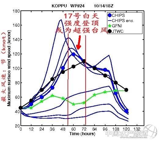 從各主客觀預(yù)報結(jié)果上看,“巨爵”極有可能在10月17號白天前后達(dá)到它強(qiáng)度的峰值,屆時它的強(qiáng)度有可能達(dá)到超強(qiáng)臺風(fēng)級。