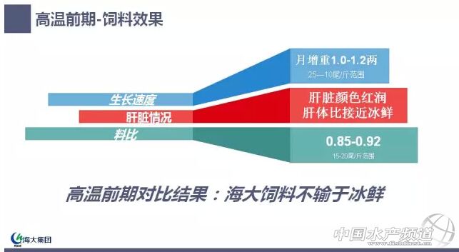 珠海海龍公司配方師石桂城指出,“全加福”牌加州鱸料所使用的均為優(yōu)質魚粉(全進口魚粉)、進口魚油,因油脂的氧化對加州鱸的肝臟、腸道有負面影響,會導致其攝食減少和生長減慢。他還指出以前養(yǎng)殖戶所反映的飼料魚生長速度不夠、高溫期加料難,歸根結底皆為肝膽代謝問題引起。而解決肝臟代謝問題的關鍵措施在于功能性營養(yǎng)素和多種維生素的適宜添加,如維生素類(VB、VC、VA、VD、VE、K3)和功能性營養(yǎng)素(膽固醇、牛磺酸、核苷酸)等。