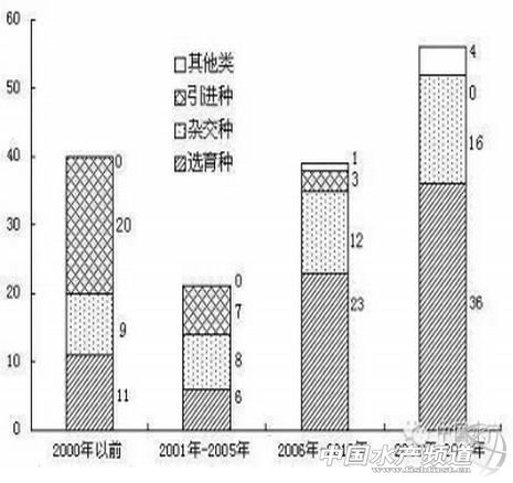 水產(chǎn)新品種研發(fā)成果時間分布圖 水產(chǎn)良種一般指泛指部分具有優(yōu)良經(jīng)濟性狀和生產(chǎn)性能的原種和水產(chǎn)新品種。現(xiàn)階段我國的水產(chǎn)新品種研發(fā)雖然具備一定的政策支持、技術(shù)保障、社會需求等利好因素刺激,但是依然面臨種質(zhì)資源衰退、重要種源依賴進口、研發(fā)體系尚不成熟、推廣能力欠缺等因素限制,未來發(fā)展道路任重道遠。 水產(chǎn)新品種研發(fā)基本情況 發(fā)展歷程 雖然我國水產(chǎn)養(yǎng)殖業(yè)發(fā)展歷史悠久,可以追溯到商周時期,距今約有3000多年,但是品種研發(fā)工作從20世紀(jì)60年代才開始,起初只是對部分養(yǎng)殖品種進行有意識的人工改良。發(fā)展歷程大致分為三個階段:第一階段,1957年以前,粗放生產(chǎn)苗種階段。苗種供應(yīng)主要依靠天然水域采捕培育,1957年育苗采捕量達到234億尾。第二階段,突破人工繁殖技術(shù)階段。1958年我國突破家魚人工繁殖后,大批野生種和馴養(yǎng)種的人工育苗技術(shù)被突破。與此同時,從國外進行引種試養(yǎng)也形成了一定的產(chǎn)業(yè)規(guī)模。第三階段,培育研發(fā)起步階段。隨著水產(chǎn)養(yǎng)殖業(yè)的迅猛發(fā)展,20世紀(jì)80年代末90年代初由于養(yǎng)殖品種退化而引起的養(yǎng)殖病害頻發(fā)等問題凸顯,迫切需求研發(fā)水產(chǎn)新品種。1991國家成立了全國水產(chǎn)原種和良種審定委員會,對水產(chǎn)新品種的審定也正式提上日程。20世紀(jì)90年代,共育成興國紅鯉、荷包紅鯉、彭澤鯽等多個水產(chǎn)新品種。從此,我國水產(chǎn)新品種研發(fā)工作拉開帷幕。 育種研發(fā)技術(shù) 目前我國水產(chǎn)育種研發(fā)技術(shù)主要包括選擇育種技術(shù)、雜交育種技術(shù)、細胞工程育種技術(shù)和分子育種技術(shù)。研究最多、使用最廣泛的是群體選擇技術(shù)。在2000年以后,我國引進并建立了多性狀復(fù)合技術(shù),迅速在多個養(yǎng)殖品種推廣應(yīng)用。該技術(shù)大規(guī)模建立家系,對家系和個體標(biāo)記識別,利用個體本身、同胞、祖先和后代等系譜和測定信息,通過約束極大似然法(restrictedmaxi?mumlikelihood,REML)和最佳線性無偏預(yù)測法(bestlinearunbiasedprediction,BLUP)進行遺傳評定,依據(jù)綜合選擇指數(shù)選擇留種親本,嚴(yán)格地在家系和個體水平上選種和配種,解決近親交配及由此導(dǎo)致的種質(zhì)退化問題。 雜交育種是充分利用種群間的互補效應(yīng),尤其是雜交優(yōu)勢。所謂雜交優(yōu)勢,是指不同種群雜交所產(chǎn)生的雜種,其生活力、生長勢和生產(chǎn)性能在一定程度上優(yōu)于兩個親本種群平均值。在水產(chǎn)養(yǎng)殖中,雜交育種有兩種方式:種內(nèi)雜交和種間雜交。種內(nèi)雜交研究的主要目標(biāo)性狀為生長速度和抗逆性,目標(biāo)為培育出高產(chǎn)且抗逆性強的新品種。種間雜交可以用來提高生長速度、調(diào)節(jié)性別比例、培育不育群體、改善肉質(zhì)、增強抗病力、增強對極端環(huán)境的適應(yīng)能力、改善重要經(jīng)濟性狀等。 細胞工程育種技術(shù)和分子育種技術(shù)是相對新穎的技術(shù)。細胞工程育種技術(shù)是在細胞和染色體水平上進行遺傳操作改良品種的育種技術(shù),是近年來的研究熱點之一。水產(chǎn)生物的細胞工程育種技術(shù)研究,目前主要有多倍體育種、雌核發(fā)育、單性苗種培育、細胞融合及核質(zhì)雜交(核移植)等。在分子生物學(xué)技術(shù)方面,已經(jīng)對分子輔助育種技術(shù)、全基因組育種技術(shù)等進行探索和研究,初步建立了相關(guān)的技術(shù)體系,目前水產(chǎn)養(yǎng)殖生物分子標(biāo)記的研究多是通過篩選和目標(biāo)性狀相關(guān)聯(lián)的各種分子標(biāo)記,從而達到間接輔助選育研究的目的。 研發(fā)成果 據(jù)統(tǒng)計,目前我國已經(jīng)報道的水產(chǎn)生物有幾千種,其中可以養(yǎng)殖的水產(chǎn)種類有170多種,主要養(yǎng)殖經(jīng)濟品種40多種,主要包括“四大家魚”、鯉、鯽、魴、鱖、羅非魚、鰻鱺、鯛、烏鱧、鱸、鯰、黃顙魚、牙鲆、石斑魚、鮰、大黃魚、鮭鱒魚、大菱鲆、鱘魚、鮠、對蝦、小龍蝦(克氏原螯蝦)、扇貝、牡蠣、蛤、珍珠貝、鮑魚、海帶、紫菜、裙帶菜、海參、海膽、中華鱉等。這些都是目前我國水產(chǎn)新品種研發(fā)的主要對象。 截至2015年,國家農(nóng)業(yè)部公告的水產(chǎn)新品種有156個,除了30個引進種外,自主培育的水產(chǎn)新品種有126個,其中選育種76個,占49%;雜交種45個,占29%;其他類5個占3%。除了草魚之外,重要的養(yǎng)殖種類基本實現(xiàn)新品種的突破。魚類87個,占56%;蝦類14個,占9%;蟹類5個,占3%;貝類21個,占13.5%;藻類21個,占13.5%;其他種類8個,占5%。主要表現(xiàn)出以下特點: 一是年均育成數(shù)量逐漸增多。2000年以前累計完成40個,2001年至2005年完成21個,2006年至2010年完成39個,2011年至2014年完成56個(詳見圖1)。近年來貝類與藻類品種數(shù)量增加明顯。42個貝類和藻類新品種中,25個是近4年完成的。 二是部分品種優(yōu)勢明顯。鯉魚、鯽魚、羅非魚和海帶新品種較多。鯉魚登記引進種4個,自主培育了24個;鯽魚無登記引進種,自主培育了12個;羅非魚登記引進種3個,自主培育了8個;海帶無登記引進種,自主