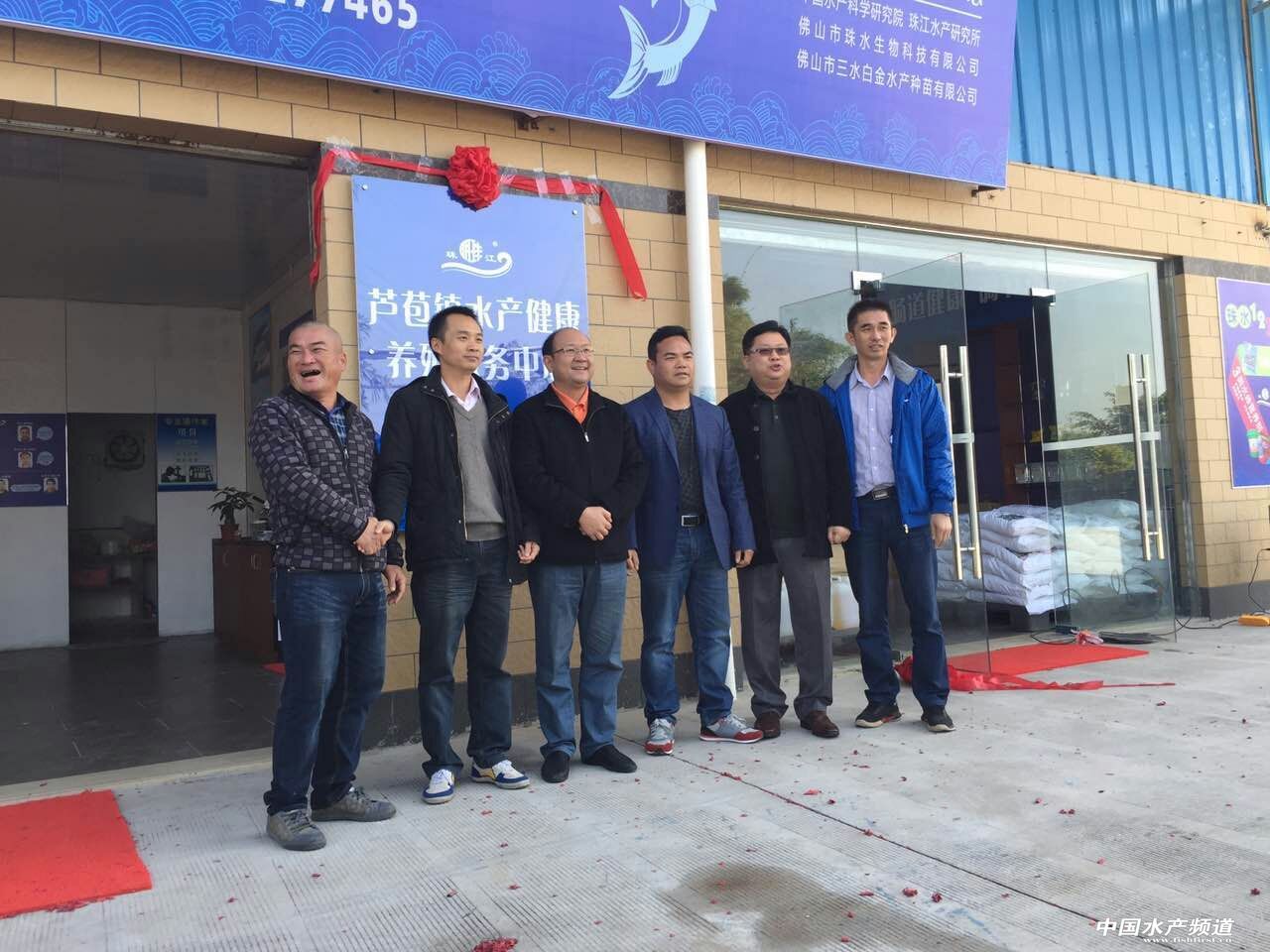 中國水產頻道獨家報道, 12.11日,在三水區蘆苞鎮蘆江水產養殖合作社舉行“蘆苞鎮水產健康養殖服務中心”掛牌儀式。順德區農林漁業局副局長譚超、蘆苞鎮副鎮長鄧啟濤、珠江水產研究所助理研究員廖國禮、珠水生物總經理梁健輝,蘆江水產合作社董事長陳啟行和蘆苞鎮水產健康養殖服務中心負責人唐勇昌等6人為中心正式揭幕掛牌。