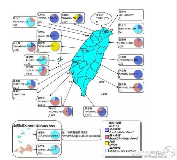 文/ 水產前沿雜志 唐東東整理 中國水產頻道獨家報道,根據臺灣漁業統計年報顯示,2014年臺灣漁業生產量約為141萬噸、產值1050億元(新臺幣,下同),其中遠洋漁業90萬噸、產值436億元,水產養殖則以34萬噸的產量(內陸養殖產量31萬噸、海面養殖產量3萬噸),貢獻了368億元的產值,表明相比遠洋漁業,臺灣水產養殖的產業機構中以產值較高的養殖品種為主。 臺灣主要養殖種類包括魚類(如虱目魚、羅非魚、鰻魚、鱸魚、石斑魚)、貝類(牡蠣、文蛤、蜆)、蝦類(白蝦、泰國蝦,即羅氏沼蝦)。 臺灣主要漁業區域產量情況(來源:臺灣漁業統計年報) 十大主養品種產量約30萬噸 2014年主要魚類養殖產量為17.85萬噸,其中羅非魚是第一大養殖魚類,約為6.97萬噸,主要養殖區域為臺南2.92萬噸、嘉義1.95萬噸;虱目魚是第二大養殖魚類,約為6.91萬噸,主要養殖區域為臺南3.33萬噸、嘉義1.68萬噸、高雄1.47萬噸;石斑魚是三大養殖魚類,約為2.62萬噸(點帶石斑魚為主,約為1.94萬噸),主要養殖區域為屏東1.43萬噸、高雄0.84萬噸;鱸魚(主要是尖吻鱸)1.16萬噸,主要養殖區域為高雄0.48萬噸、屏東0.35萬噸;鰻魚約為1905噸,主要養殖區域為云林549噸、屏東489噸、嘉義423噸。 主要養殖貝類產量為9.85萬噸,其中文蛤是第一大養殖貝類,約為6萬噸,主要養殖區域為云林3.36萬噸、臺南1.32萬噸、彰化0.79萬噸;牡蠣約為2.53萬噸,主要養殖區域為嘉義1.03萬噸、臺南0.6萬噸、云林0.52萬噸;蜆約為1.32萬噸,主要養殖區域為彰化0.84萬噸、花蓮0.48萬噸。 主要養殖蝦類產量2.13萬噸,其中白蝦是第一大養殖蝦類,約為1.27萬噸,主要養殖區域為臺南0.48萬噸、嘉義0.46萬噸;泰國蝦為0.86萬噸,主要養殖區域為屏東0.64萬噸、嘉義0.18萬噸。 臺灣主要漁業區域面積情況(來源:臺灣漁業統計年報) 養殖面積71.12萬畝 臺灣水產養殖面積約為71.12萬畝,其中海面養殖面積16.6萬畝、內陸養殖面積54.52萬畝;另外還有約30萬立方米的網箱養殖,分布在屏東(13.67萬立方米)和澎湖(15.89萬立方米)兩地,其中石斑魚網箱養殖面積約為2.7萬立方米。 主要魚類養殖面積約為27.16萬畝,包括虱目魚14.79萬畝(其中臺南7.9萬畝、嘉義3.57萬畝、高雄3.05萬畝);羅非魚7.11萬畝(其中臺南2.16萬畝、嘉義1.5萬畝);石斑魚3.04萬畝(其中高雄0.93萬畝、屏東0.84萬畝);鱸魚1.52萬畝(其中高雄0.4萬畝、屏東0.26萬畝);鰻魚0.68萬畝(其中云林0.28萬畝、屏東0.083萬畝、嘉義0.11萬畝)。 主要貝類養殖面積約為28.19萬畝,包括牡蠣15.54萬畝(其中臺南2.99萬畝、云林5.13萬畝、嘉義5.67萬畝);文蛤11.18萬畝(其中云林4.81萬畝、臺南3.05萬畝、彰化2.06萬畝);蜆1.48萬畝(其中花蓮0.61萬畝、彰化0.76萬畝) 主要蝦類養殖面積約為5.01萬畝,包括白蝦2.68萬畝(其中嘉義1.22萬畝、臺南0.6萬畝);泰國蝦2.33萬畝(其中屏東2.13萬畝、嘉義0.03萬畝)。 水產飼料產量48.18萬噸 2014年,臺灣水產配合飼料生產企業共65家,臺南、高雄和屏東為主要產地,飼料企業數量分別為23家、14家和13家。 水產配合飼料產銷量為48.18萬噸,其中虱目魚料22.74萬噸、羅非魚料8.6萬噸、鱸魚料3.54萬噸、鰻魚料3.09萬噸、草蝦料2.05萬噸。 虱目魚料的生產廠商主要來自高雄、臺南和屏東,分別向市場供應了9.63萬噸、6.61萬噸和4.36萬噸飼料。羅非魚料的生產廠商主要來自臺南、高雄和臺中,分別供應了4.12萬噸、1.47萬噸和1.16萬噸飼料。鱸魚料的生產廠商主要來自屏東和高雄,分別供應了1.43萬噸和1.25萬噸。鰻魚料的生產廠商主要來自高雄、屏東和臺南,分別供應了1.25萬噸、0.93萬噸和0.84萬噸飼料。草蝦料的生產廠商主要來自臺南和屏東,分別供應了0.92萬噸和0.7萬噸飼料。 水產品消費量近40萬噸 2014年臺灣共向消費市場供應了44.31萬噸水產品,其中72.57%(即32.16萬噸)的供應量來自本土,有12.16萬噸由其它地區供應。消費方面,在產地銷售的水產品共約29.14萬噸,占總銷售量的65.75%,由產地供給臺灣其它鄉鎮市場的水產品約7.66萬噸,外銷水產品約為7.44萬噸。 高雄是臺灣第一大水產品供應市場,向市場提供了16.74萬噸的水產品;其次是宜蘭縣的蘇澳鎮,提供了6.44萬噸水產品;臺北提供了2.47萬噸水產品。三個地區共提供了25.65萬噸水產品,占總供應量的58%。 高雄也是臺灣第一大水產品消費市場,共消耗了13.68萬噸水產品;其次是蘇澳2.19萬噸,臺中1.5萬噸。 蘇澳是第一大外銷市場,對外供應水產品3.87萬噸,其次是高雄2.28萬噸,以及東港1.05萬噸。 全島共有764家水產加工廠 據統計數據顯示,2014年臺灣共有水產加工廠764家,包括食用品加工廠748家、非食用品加工廠16家。主要分布在澎湖、高雄、宜蘭、新竹等四個地方,分別有228家、165家、135家、116家。 其中,食用品加工廠中罐頭品加工廠21家、冷凍加工廠160家、熏制品加工廠17家、干制品加工廠69家、調味加工廠93家、魚翅加工廠4家、魚卵加工廠86家、魚醬制品廠291家、魚油加工廠2家、其它類型加工廠5家。非食用品加工廠中,貝殼粉加工廠3家、魚粉加工廠7家、珊瑚制品廠6家。 大陸、越南是臺灣主要進出口市場 2014年臺灣的出口水產貿易量值中,出口總量為79.45萬噸、出口總額為18.7億美元。出口產品形式主要為冷凍水產品,出口量為72.28萬噸、出口額為12.9億美元。 泰國是臺灣第一大出口市場,出口量為18.58萬噸、出口額為2.47億美元;中國大陸是第二大出口市場,出口量為12.47萬噸、出口額為2.56億美元;越南是第三大出口市場,出口